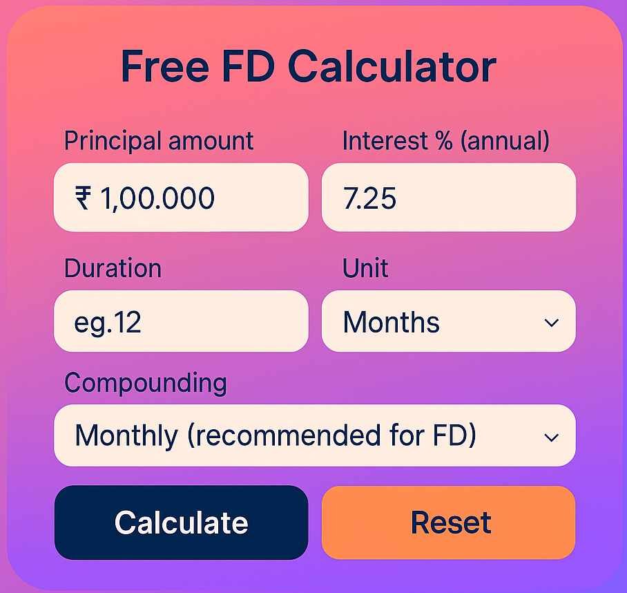 “Plan your savings with our Free FD Calculator — instantly know your maturity amount and interest earned.” Free FD Calculator…