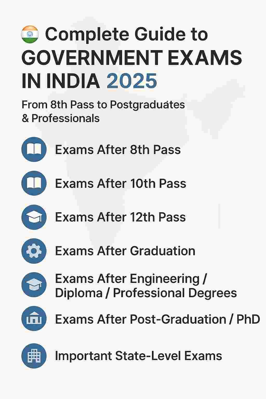 🇮🇳 Complete Guide to Government Exams in India (2025) From 8th Pass to Postgraduates & Professionals Government jobs in India…